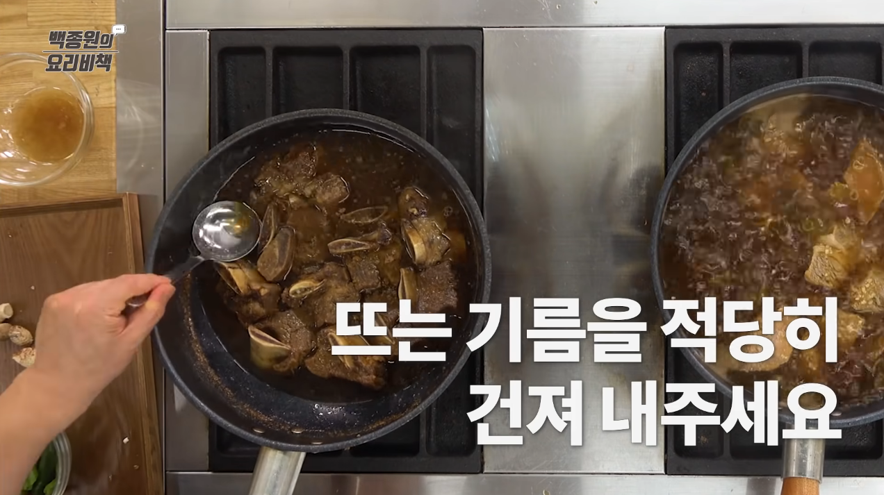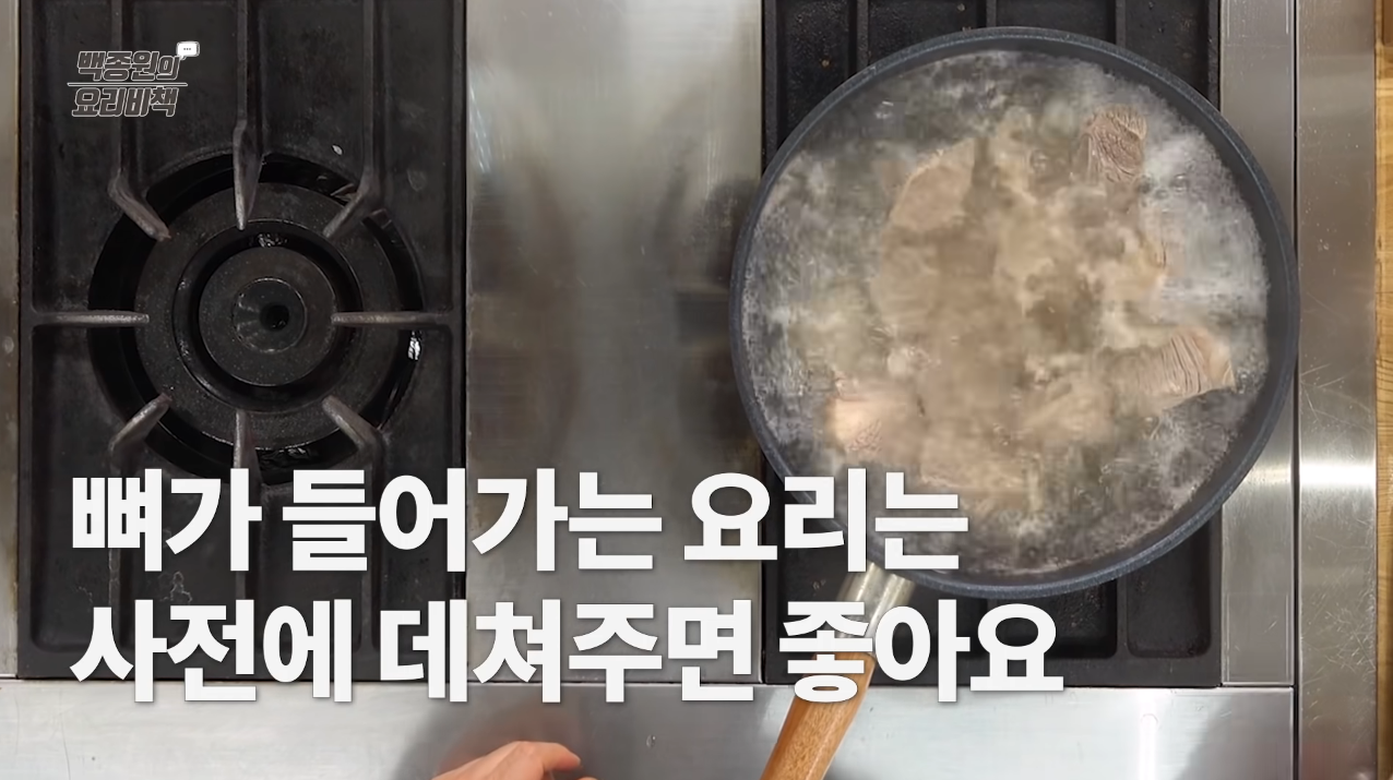 Tip: 조리 중에 소갈비 뼛속의 피가 흘러나오면 양념의 맛이 떨어지기 때문에 피가 흘러나오지 않게 응고시킨다.
