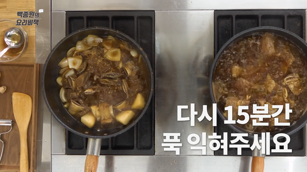 물이 졸아들 정도로 조절하면서 중 불에 약 40분 정도 끓인다.