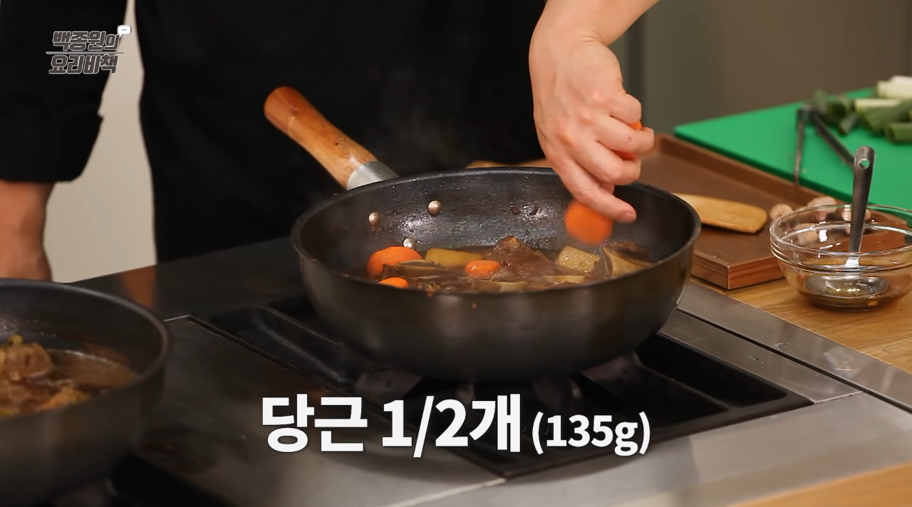 Tip: 사용하는 냄비의 크기, 화력에 따라 물 조절을 하면서 졸이고, 당근, 무의 모양이 으깨지지 않도록 주의한다.