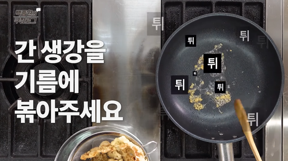 프라이팬에 식용유를 두르고 간 생강을 넣어 볶는다.