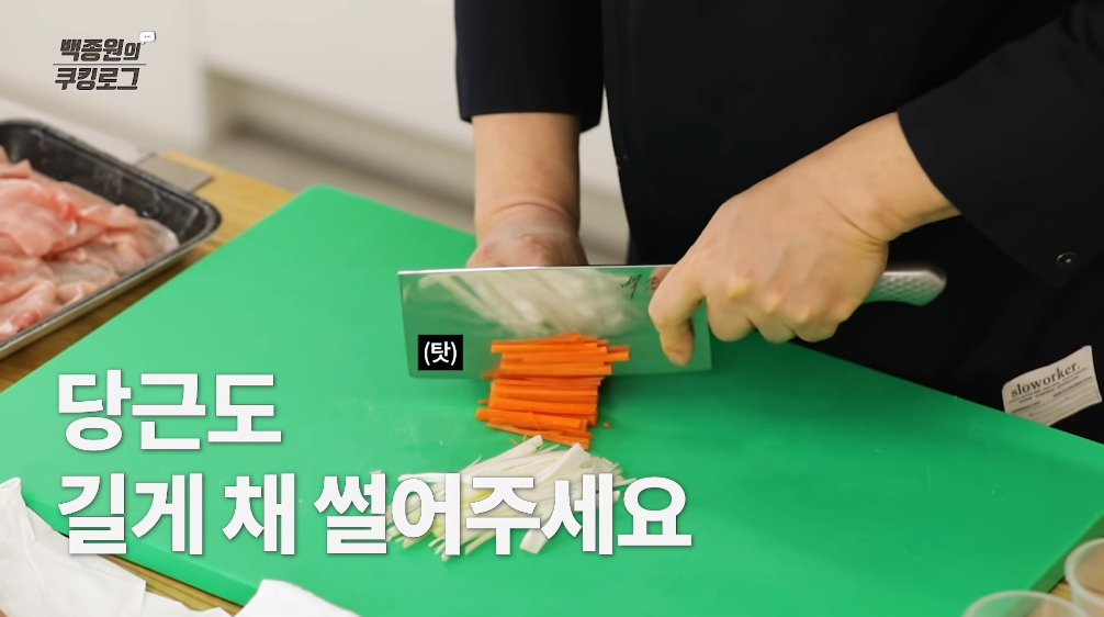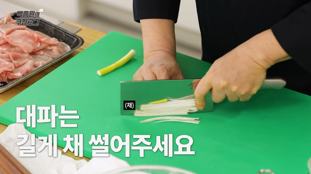 대파는 6cm 길이로 심지를 제거하고 가늘게 채 썬다.