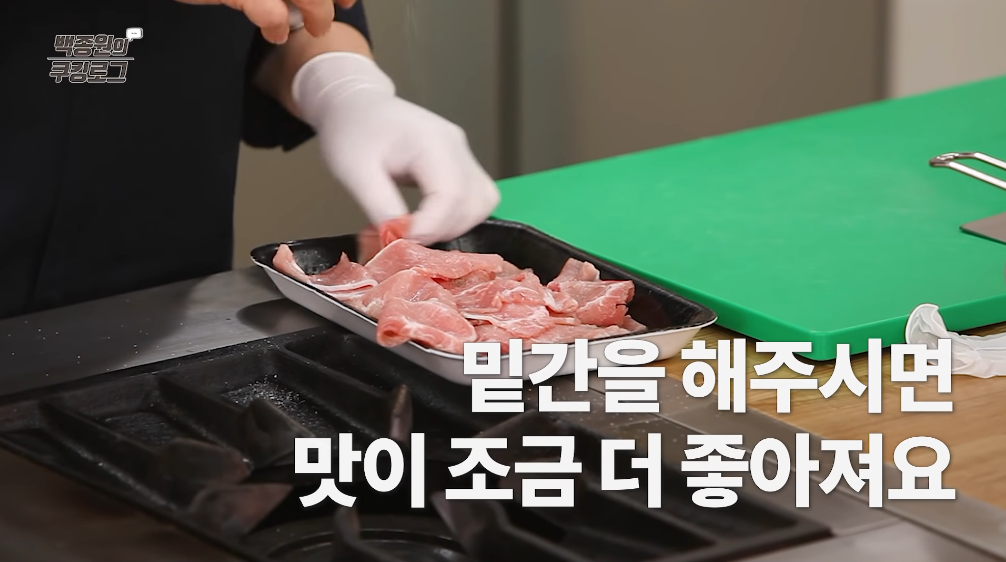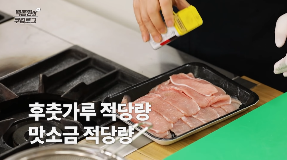 돈등심에 맛소금, 후추를 뿌려 밑간한다.