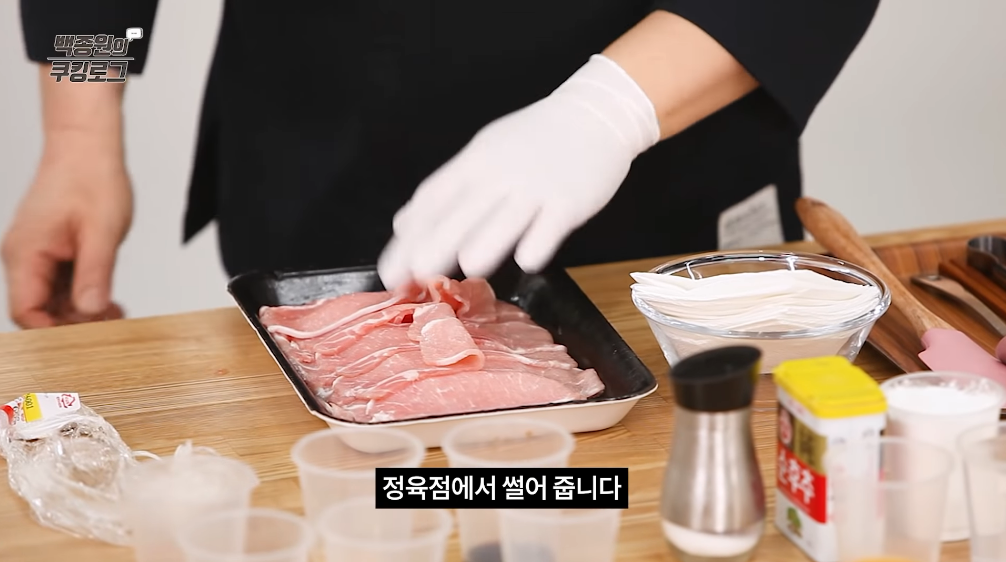 돈등심은 0.3cm 두께로 잘라 준비한다.