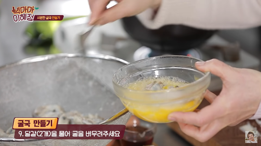 끓는 물에 달걀옷을 입은 굴을 넣어주세요