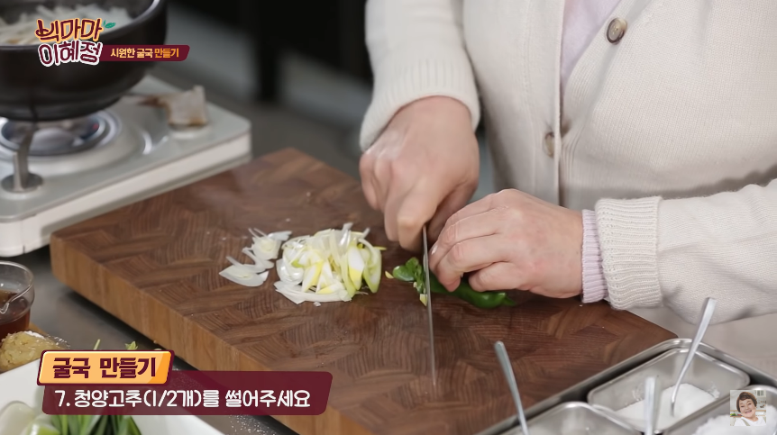 물이 끓기 전에 간 마늘(1/2큰술)을 넣어주세요