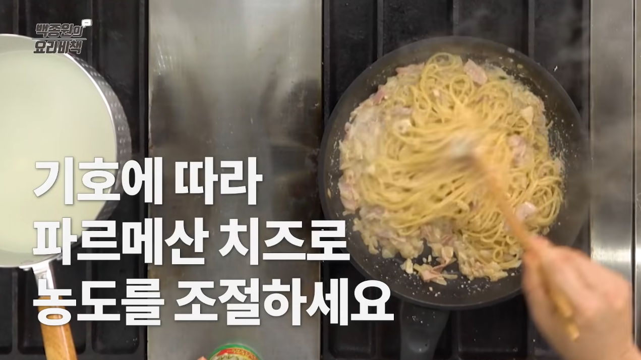 불을 끄고 파르메산 치즈를 골고루 뿌려 섞는다.