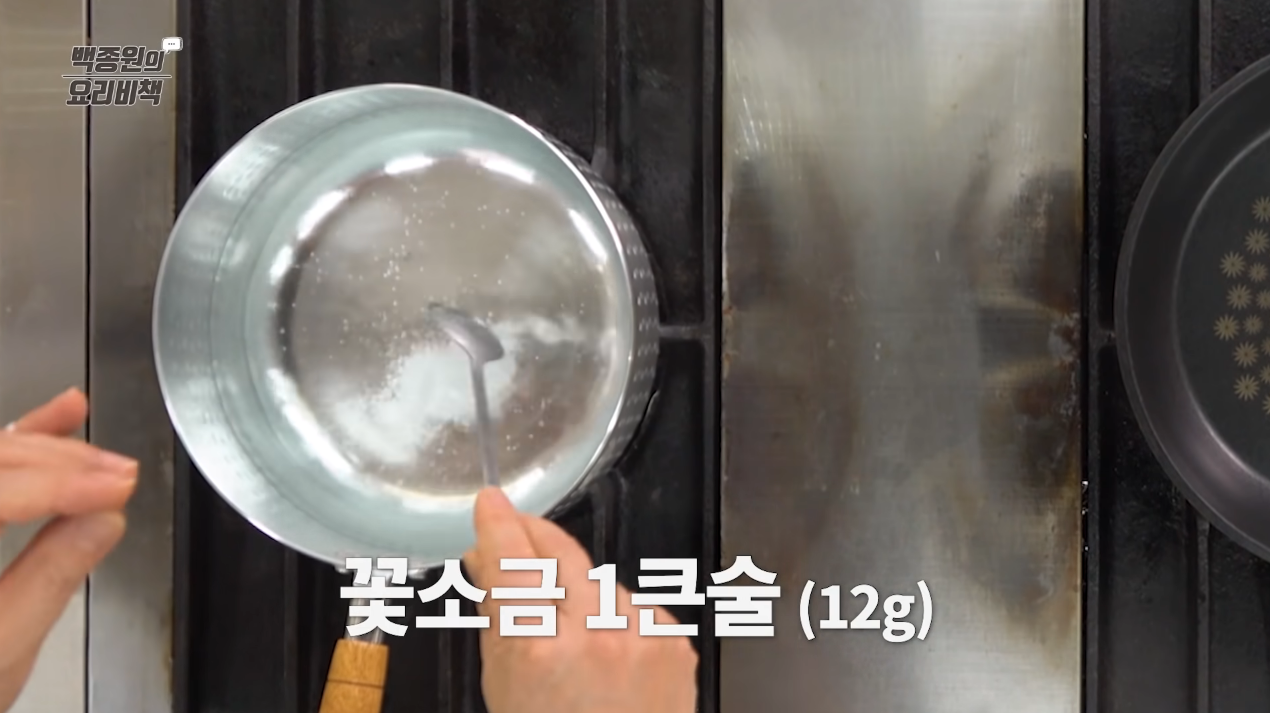 불을 약 불로 줄인 후 꽃소금으로 간을 한다.