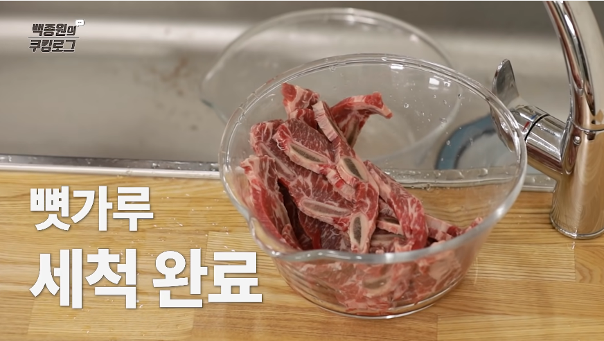 갈비는 흐르는 물에 세척하여 뼛가루를 제거하고 물기를 빼준다.
