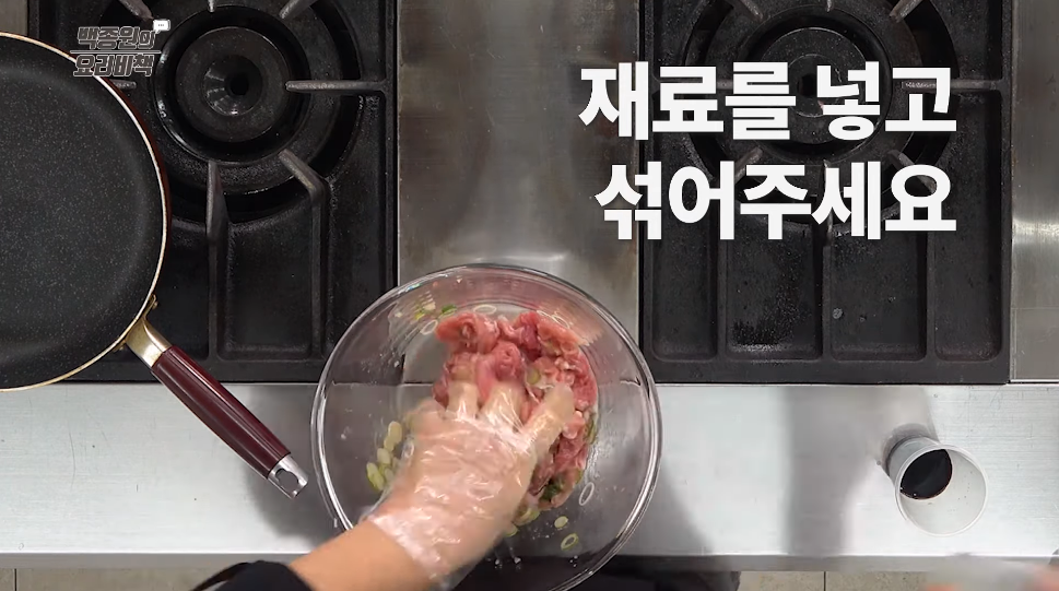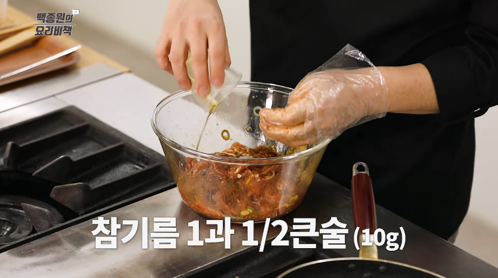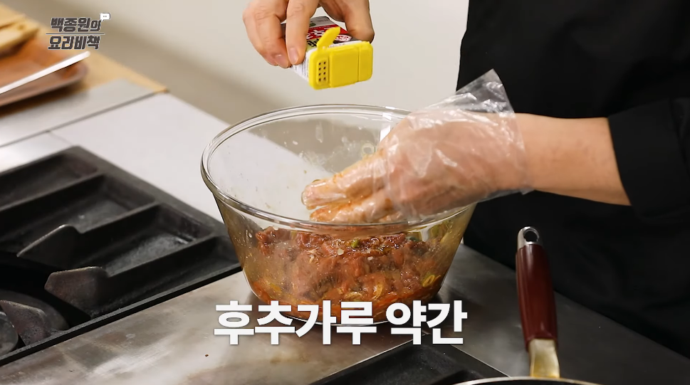 참기름, 후추가루를 넣고 골고루 버무려 재운다.