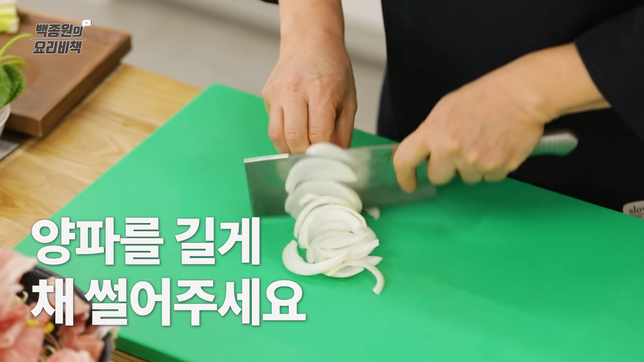 양파는 두께 0.5cm 정도로 채 썰어 준비한다.