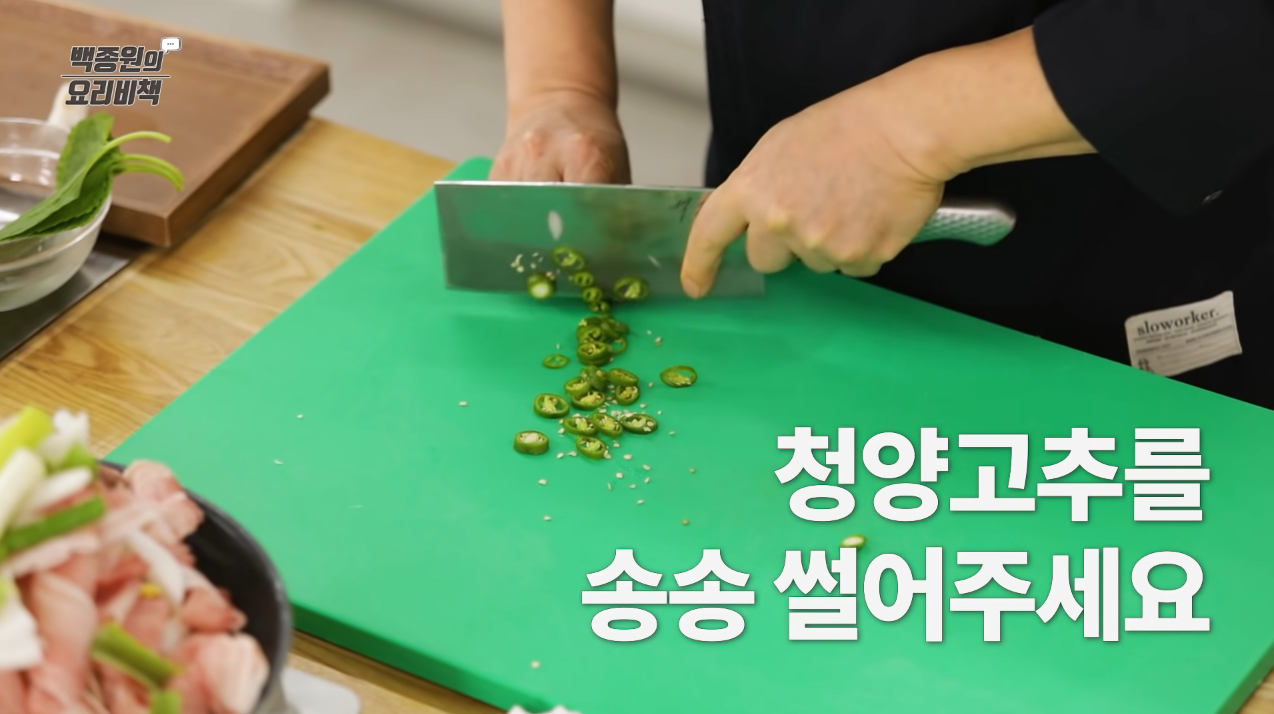 대파는 반 갈라 길이 5cm 정도로 길게 썬다.