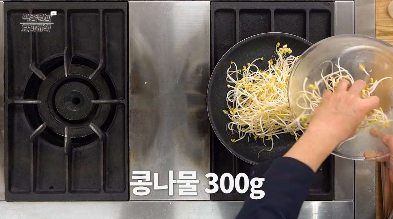 콩나물은 깨끗하게 세척하여 체에 밭쳐 물기를 제거한다.
