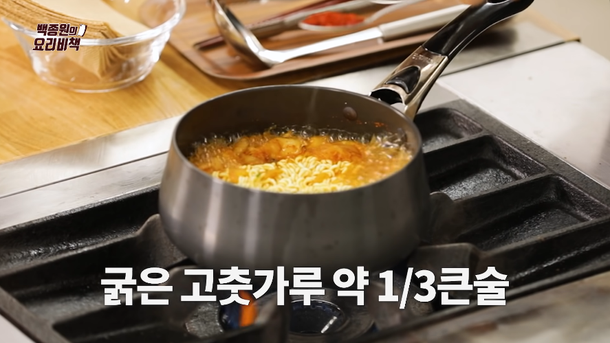 면이 완전히 풀어지고 약 1분정도 끓인 후 불을 끈다.