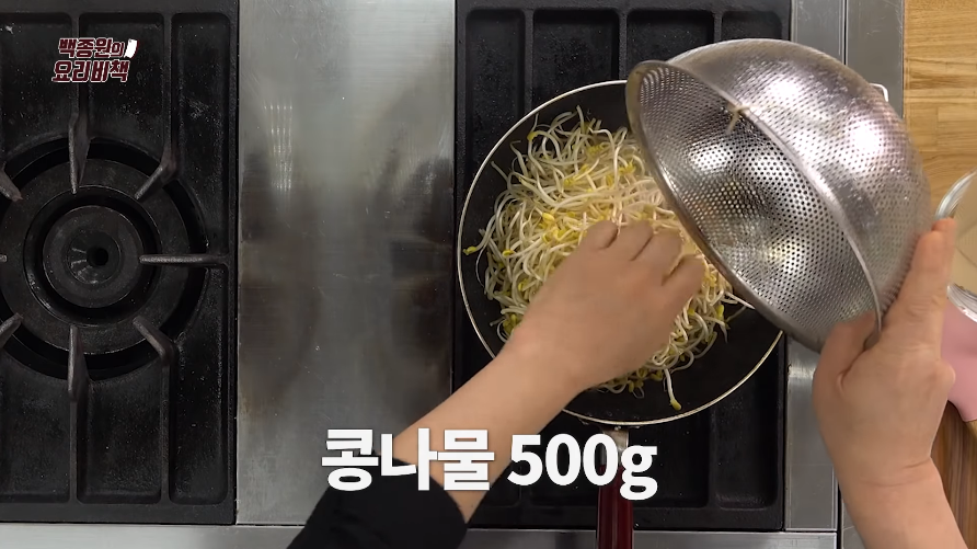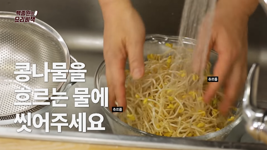 콩나물은 가볍게 세척하여 채반에 밭쳐 물기를 제거한다.