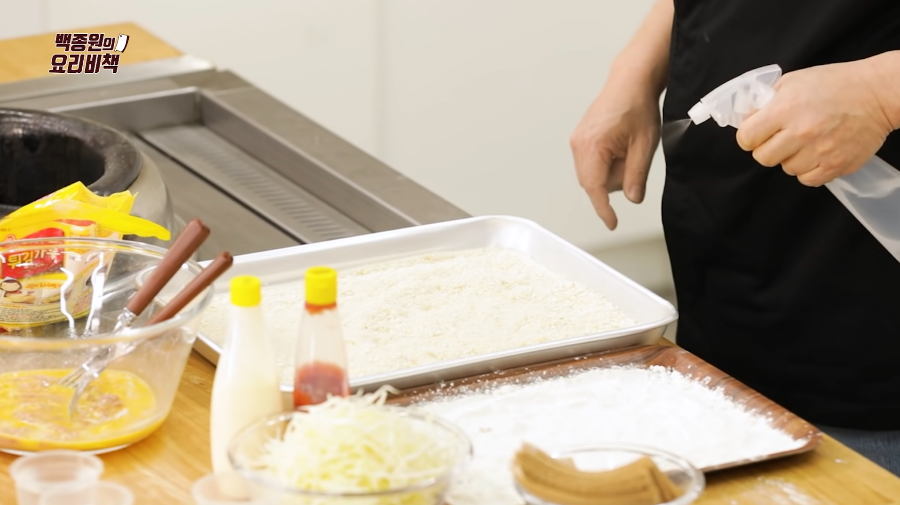 *빵가루가 너무말라 있을 경우 스프레이를 이용하여 물을 뿌려 촉촉하게 만들어 준다.