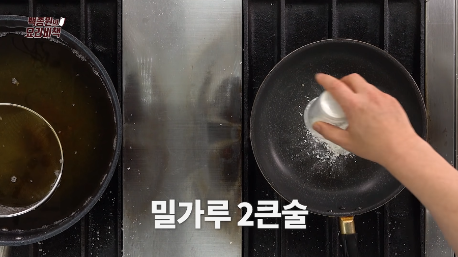넓은 팬에 밀가루, 식용유를 넣고 약불에 브라운 루가 되도록 볶아준다.