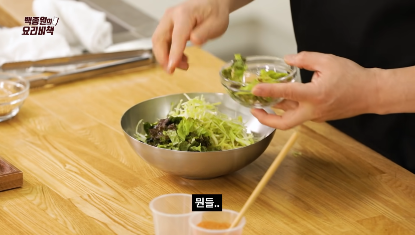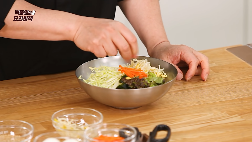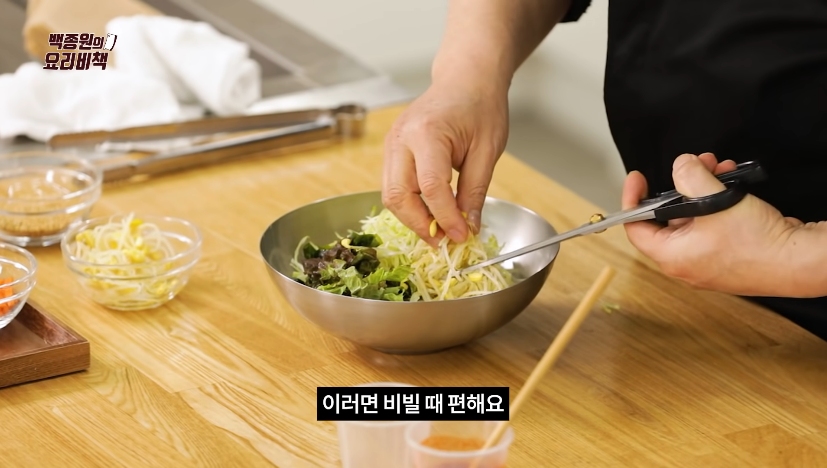 * 가위로 먹기 좋게 잘라 준비하면 비빌 때 편하다.