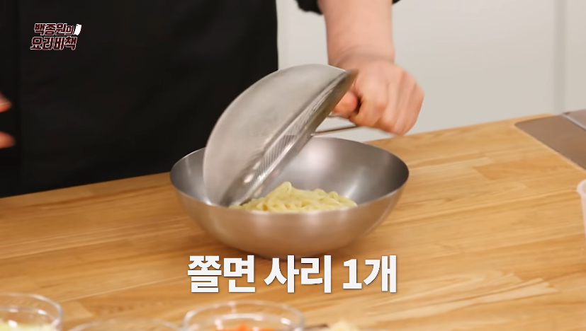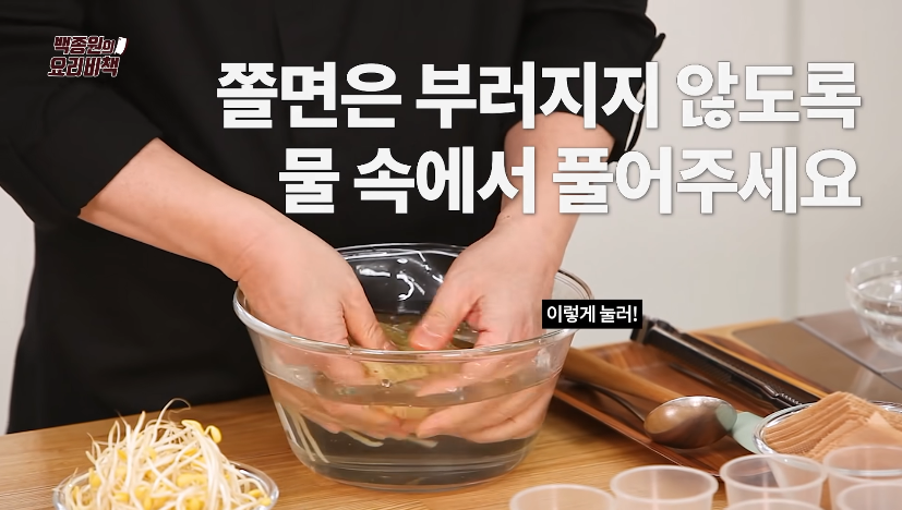 깊은 볼에 물을 받은 후 면을 넣고 끊어지지 않도록 살살 풀어 준비한다.