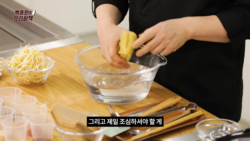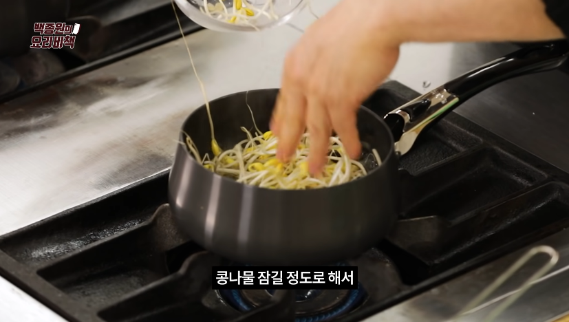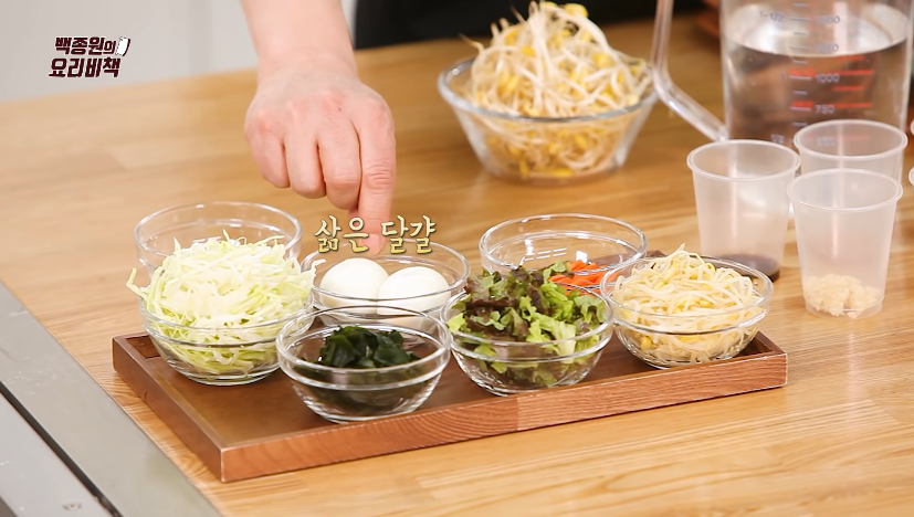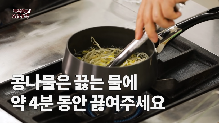콩나물은 끓는 물에 약4분정도 삶아 찬물에 헹궈 물기를 제거하여 준비한다.
