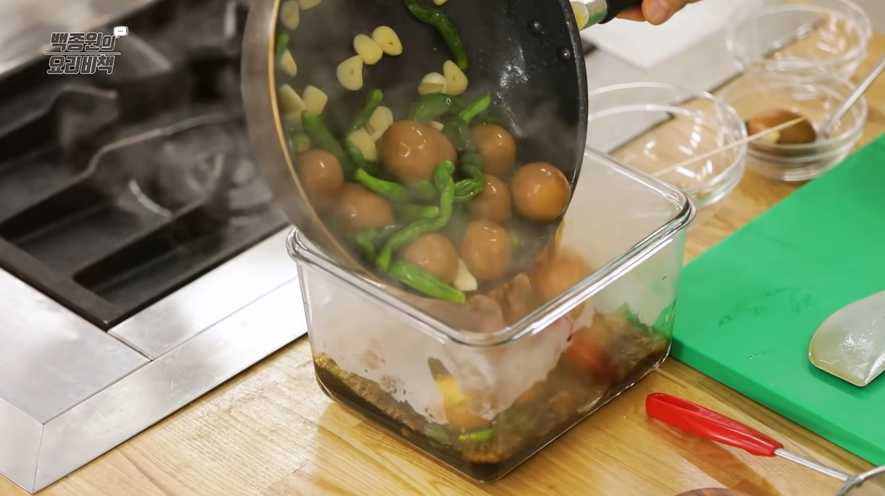 완성한 달걀 장조림은 식혀서 밀폐 용기에 넣어 보관한다.