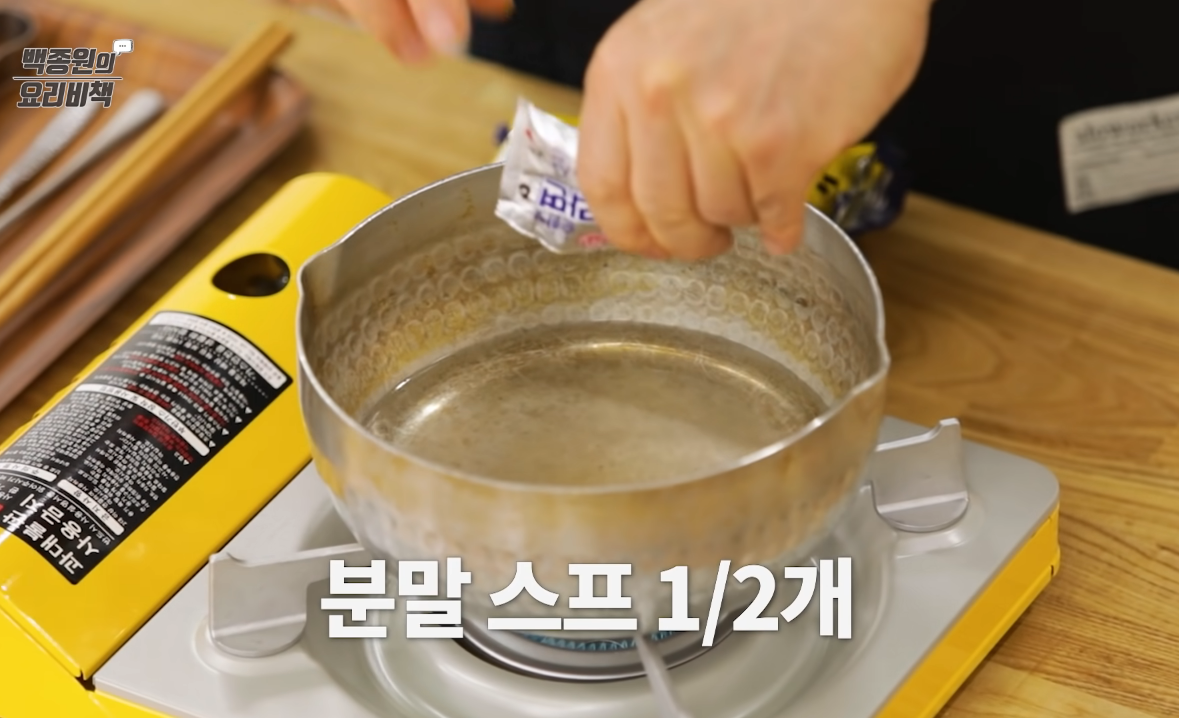 (분말스프의 양은 기호에 맞게 조절한다.)
