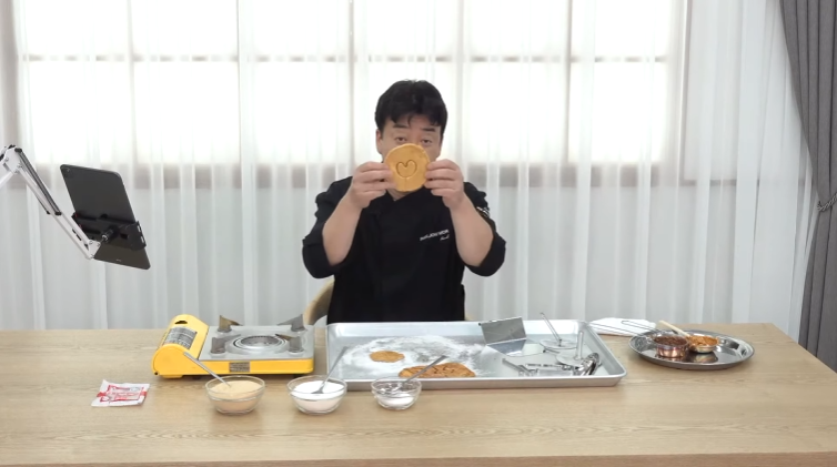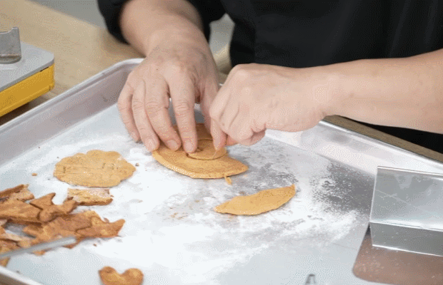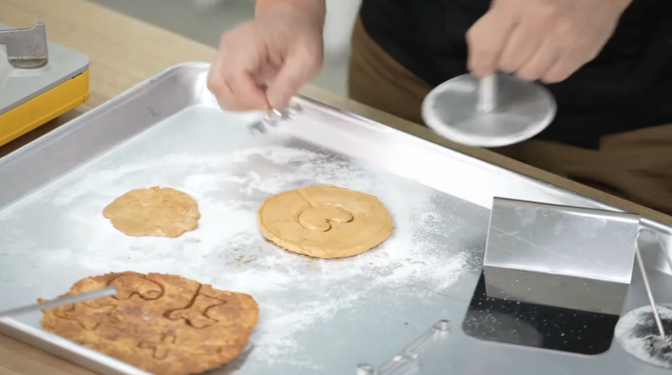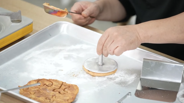 달고나가 식기 전에 모형틀로 무늬를 찍어준다.