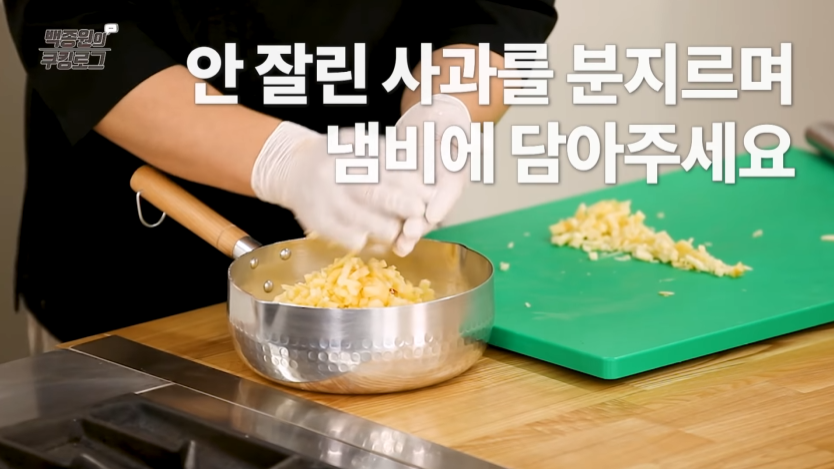 사과가 익으면 불을 끄고 식힌 후 밀폐용기에 담아 냉장 보관한다.