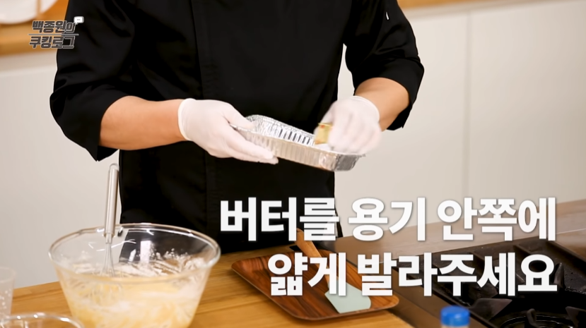 오븐 용기 안쪽에 전체적으로 버터를 얇게 바른다.