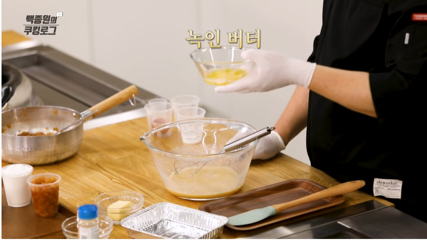 버터는 유리 볼에 담아 전자레인지에 1분 정도 돌려 녹인 후 식힌다.