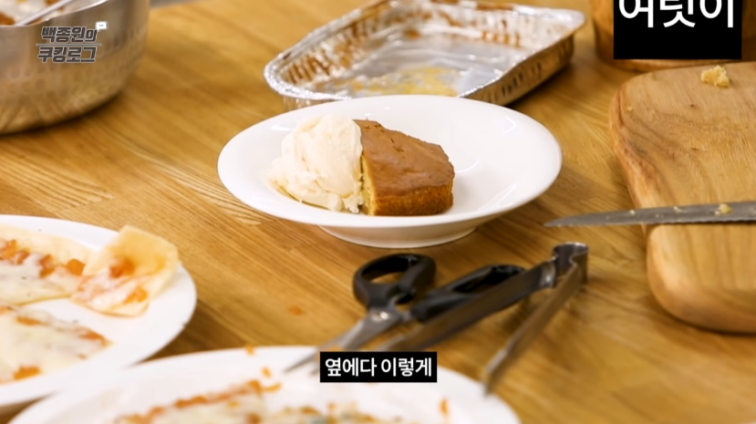 파이가 구워지면 용기에서 분리시켜 먹기 좋은 크기로 자른다.