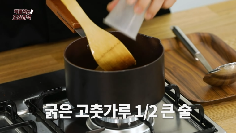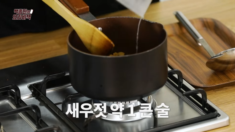 고추기름이 나오면 새우젓을 넣고 볶는다.