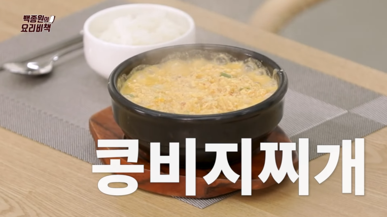 콩비지찌개가 끓어 오르면 뚝배기에 옮겨 담아 다시 한번 끓여 완성한다.
