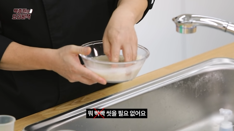 쌀은 깊은 볼에 담아 첫 물은 바로 따라 버리고 2번 정도 세척하여 약 30분 정도 불린다.