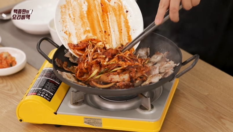 ❐ 약불에서 볶아가며 먹다가 냄비 가운데에 신김치를 넣고 구워 함께 먹어도 좋다.