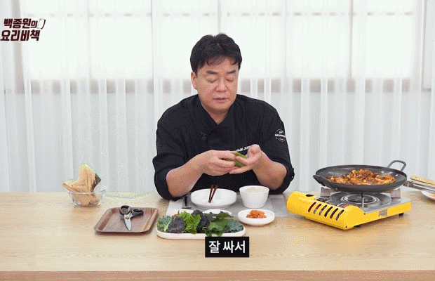 오징어가 완전히 익으면 약 불로 줄여 밥과 함께 먹거나 쌈을 곁들여 먹는다.