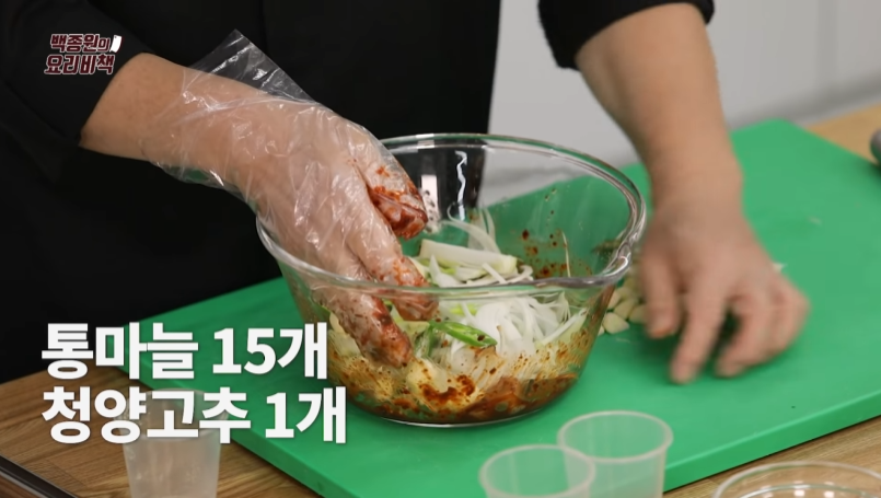 양파, 대파, 청양고추, 통마늘을 넣고 오징어와 함께 버무린다.
