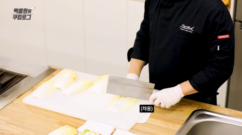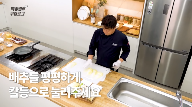 프라이팬에 식용유를 두르고 불을 켠 뒤 배추를 넣고 센 불에서 노릇하게 익혀낸다.