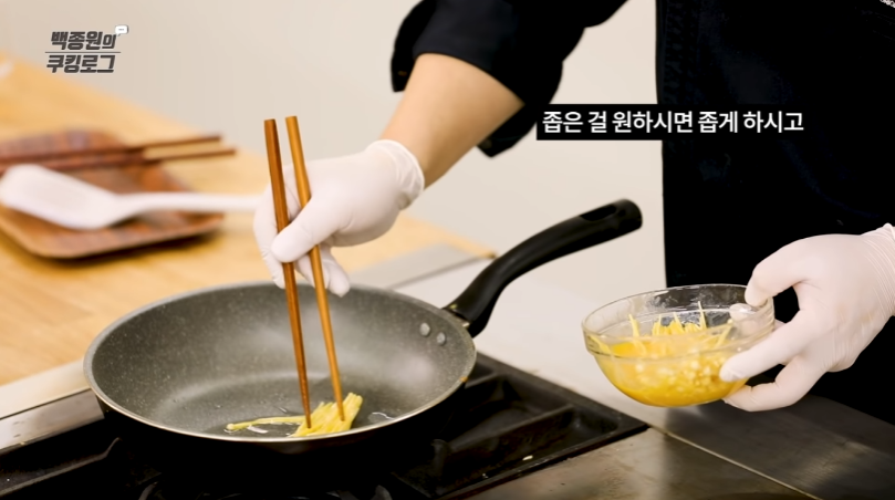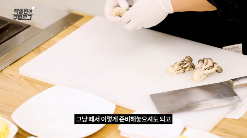 프라이팬에 식용유를 두르고 불을 켠 뒤 느타리버섯, 팽이버섯, 새송이버섯을 한 입 크기로 덜어내어 센 불에서 노릇하게 익혀낸다.