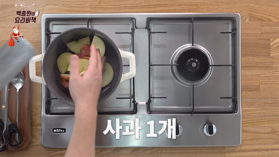 냄비에 잘라 둔 과일, 시나몬 스틱, 꿀, 와인을 넣고 강불에 끓인다.