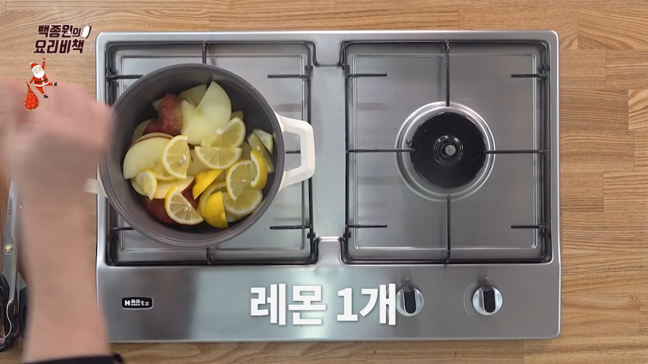 사과, 레몬, 오렌지는 깨끗하게 세척한 후 반으로 잘라 두께 1cm로 편썬다.