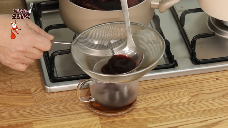 과일과 함께 끓인 뱅쇼는 체에 걸러 잔에 담아 완성한다.