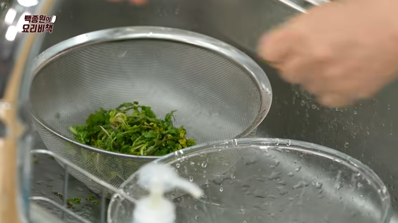 ❐ 흙이 많은 냉이는 물에 담궈 놨다가 세척한다.