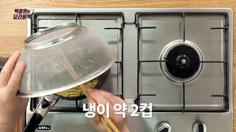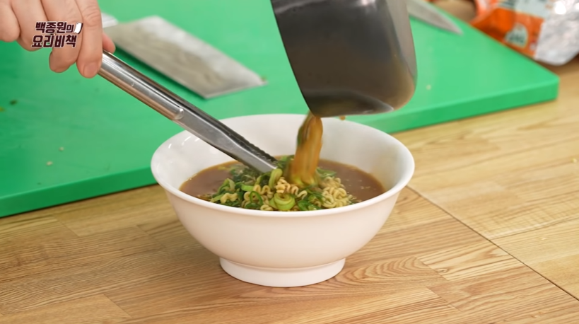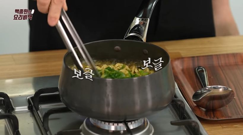 접힌 라면이 펼쳐질 정도로 익으면 손질해 둔 냉이를 넣고 함께 끓인다.