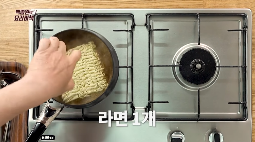 물이 끓으면 라면수프를 넣은 후 면을 넣는다.