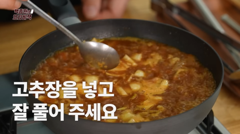 정수물, 재래식 된장, 고추장을 넣고 잘 풀어준다.