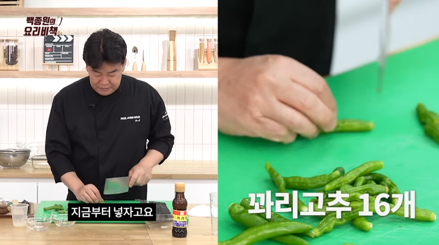꽈리고추는 3~4cm 정도로 자르고 청양고추는 두께 0.5cm로 송송 썰어 준비한다.