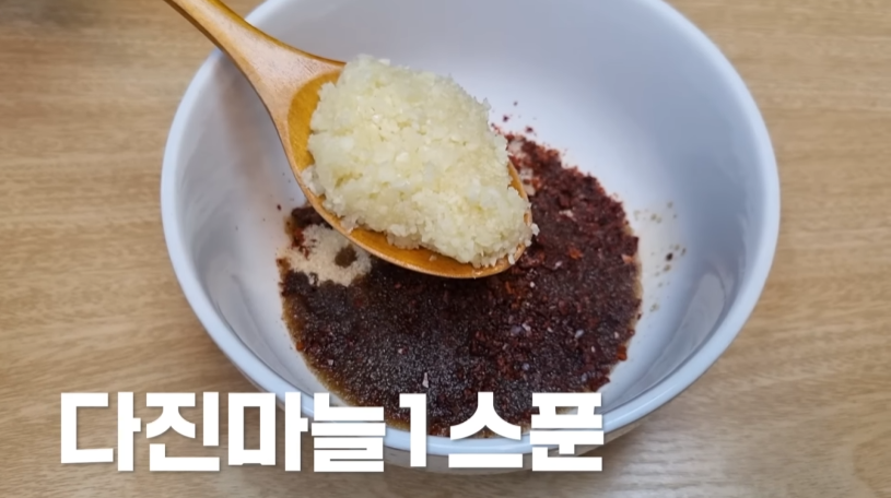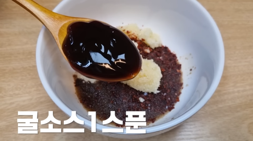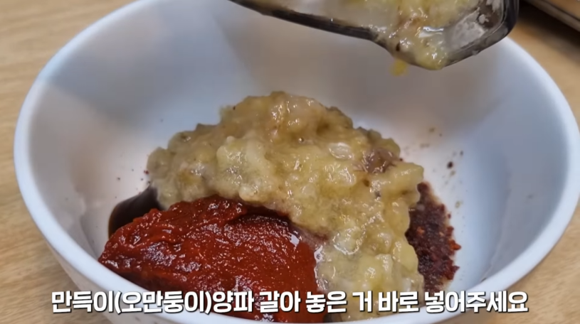 3. 고춧가루, 설탕, 진간장, 다진 마늘, 굴소스, 고추장, 만득이 간 것을 넣고 잘 섞어줍니다.
