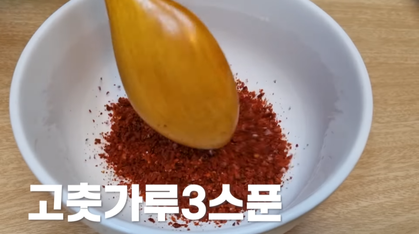 5. 양념 재료 - 고춧가루 3스푼, 설탕 1스푼, 진간장 3스푼, 다진 마늘 1스푼, 굴소스 1스푼, 만득이(오만둥이)-7개(포인트), 고추장 가득 1스푼, 통깨 1스푼