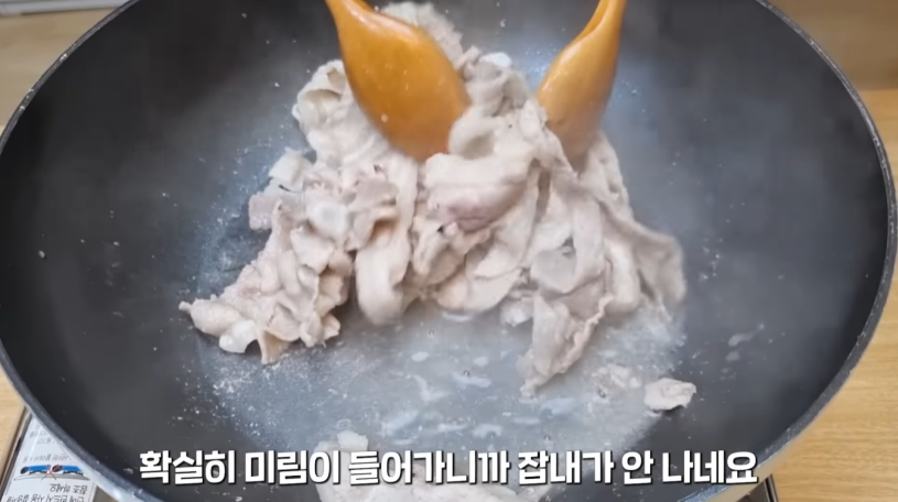 4. 강불에 대패삼겹살을 볶아줍니다.