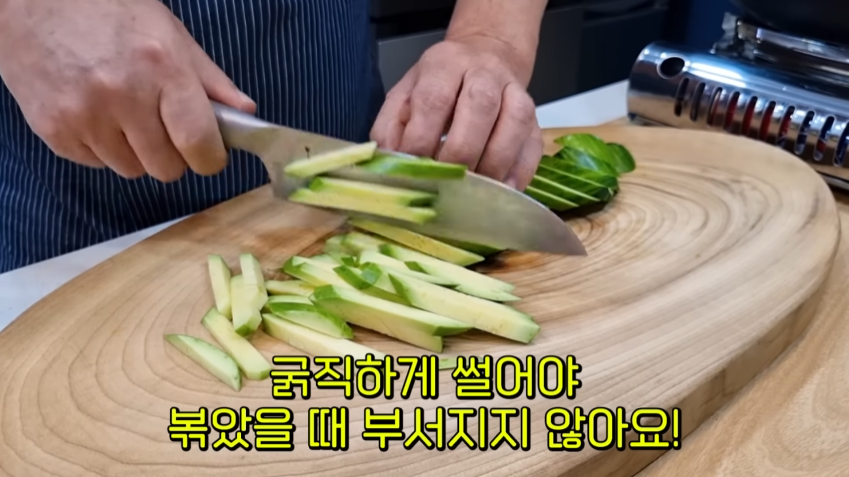 3. 애호박을 대각선으로 채 썰어줍니다.